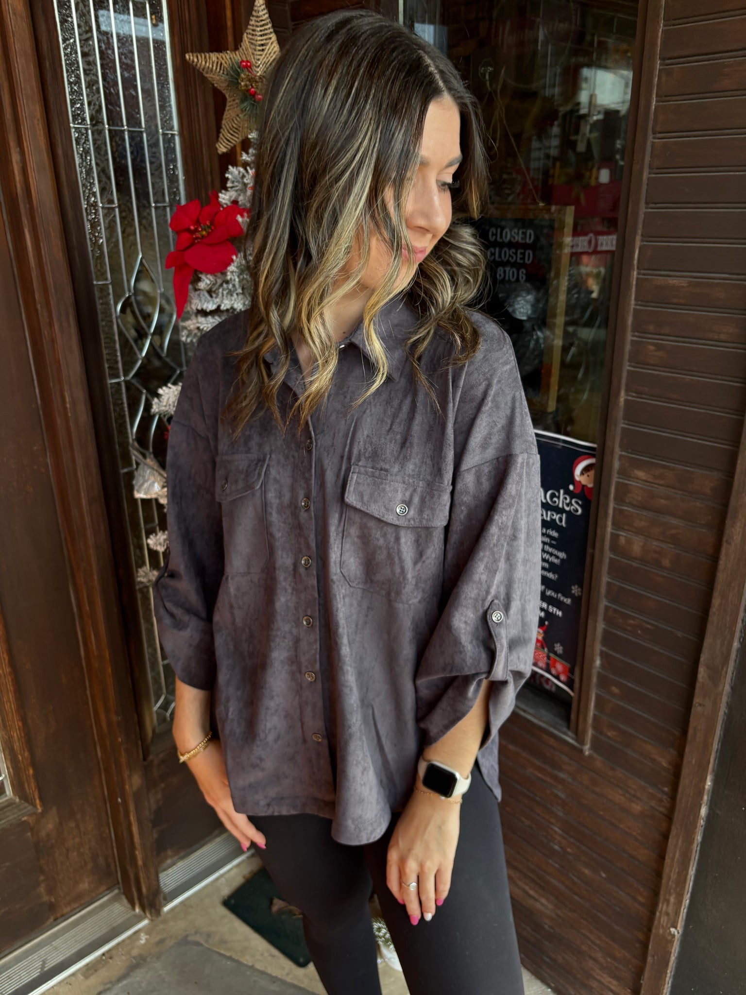 Charcoal Suede Button Down